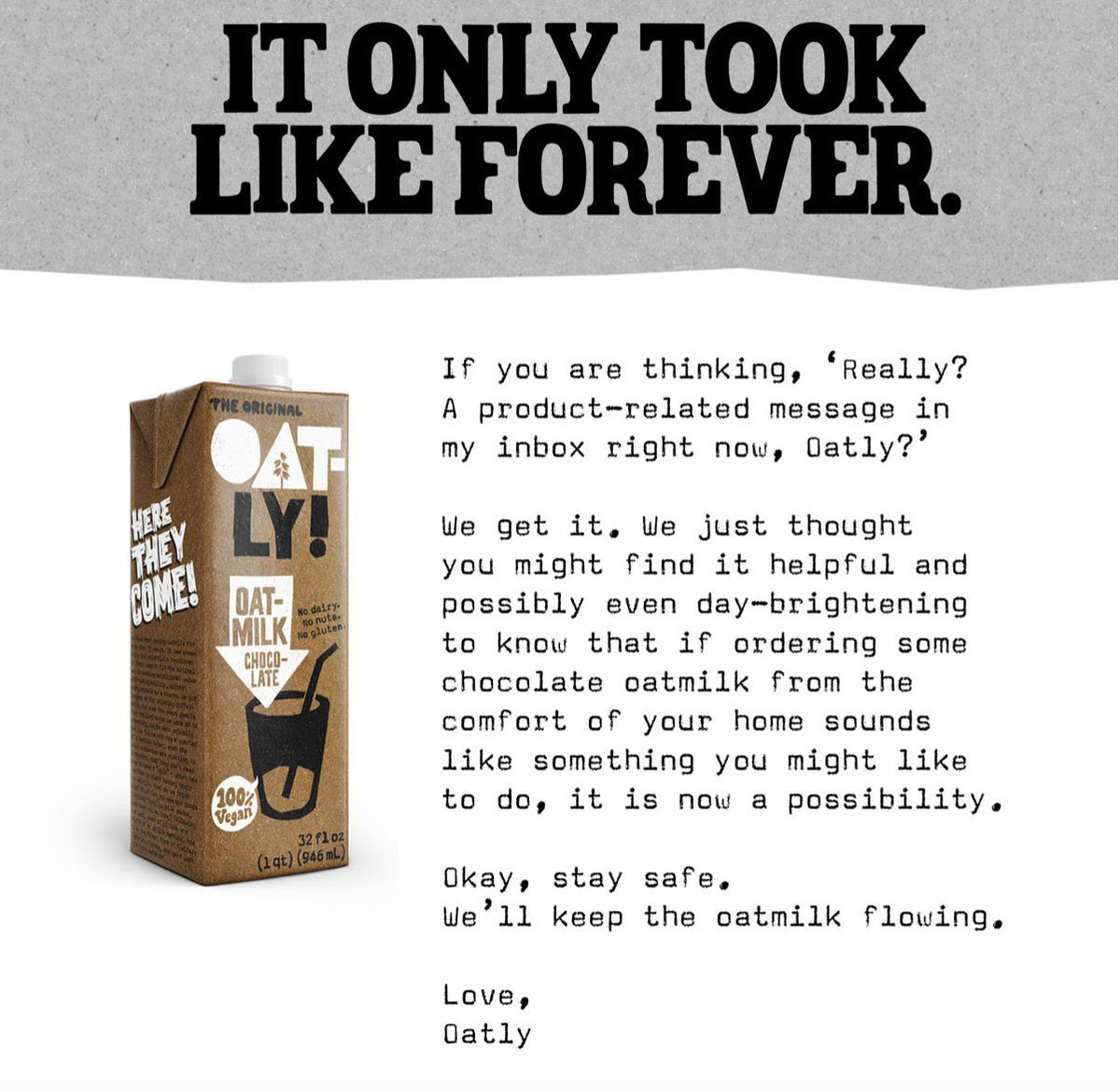 Oatly knows its audience. And they know that Oatly doesn’t taste good. It’s their brand voice. They also know that it’s part of the appeal.