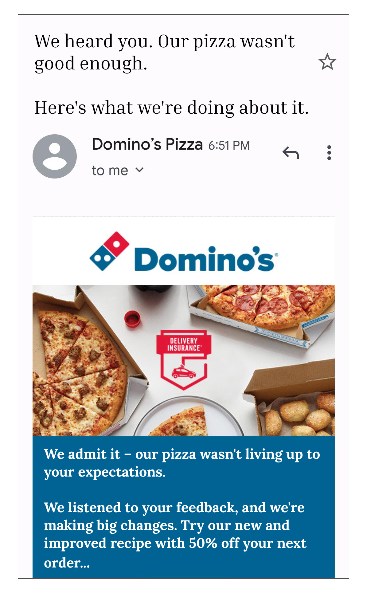 The thing is, Domino’s Pizza knew they had terrible pizza. So they proudly admitted it. They created a campaign that addressed their mistakes.